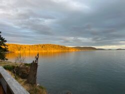 I’m still in the Pacific Northwest, as the photo from my deck view attests where there’s a comfortable chair. Inside another chair sits directly in front of a picture window opening onto the deck, so I have my choice of in or out for my Morning Musings, depending on weather and mood.